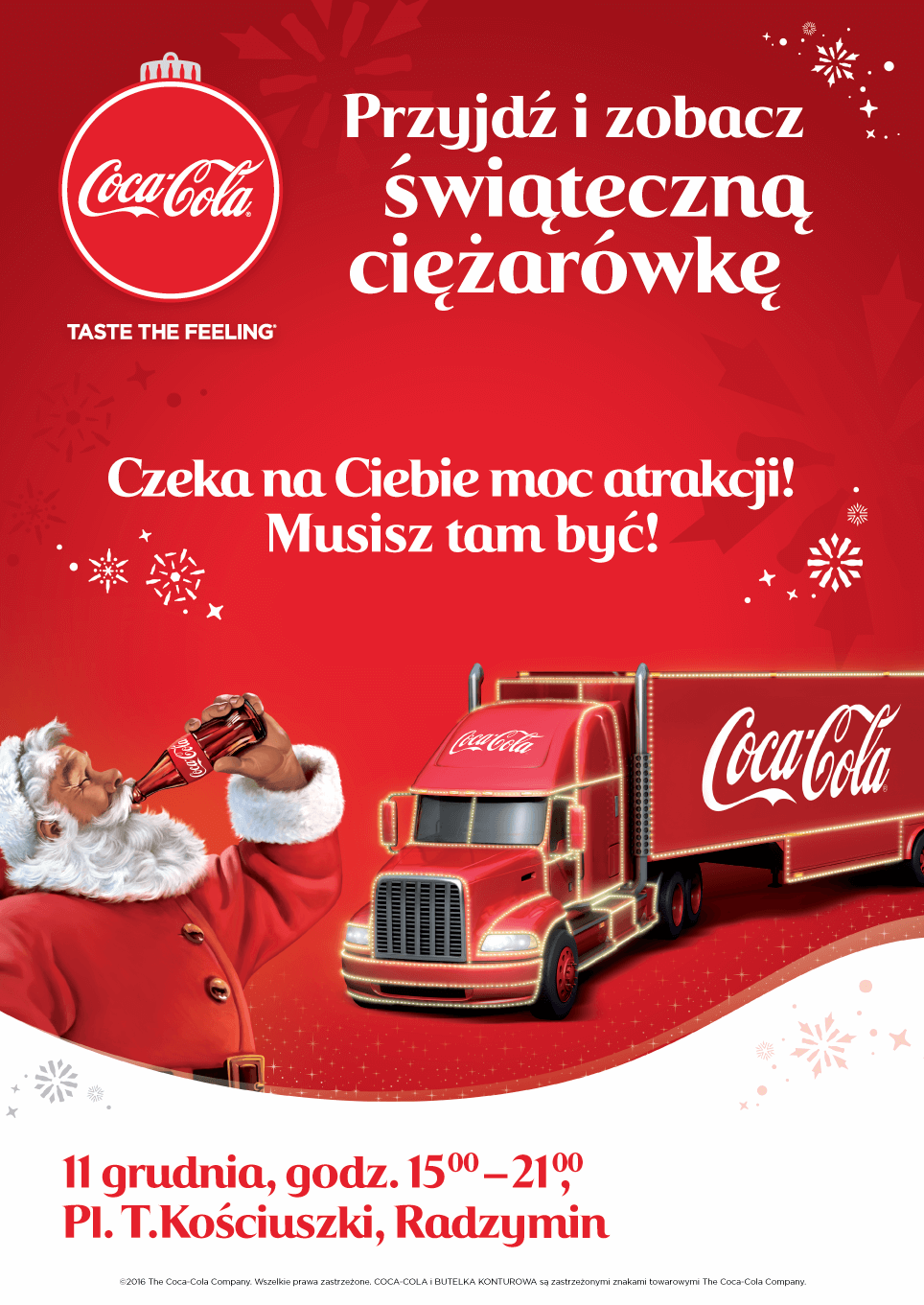 · Godz. 15-21 – świąteczna ciężarówka Coca-Coli, pl. T. Kościuszki