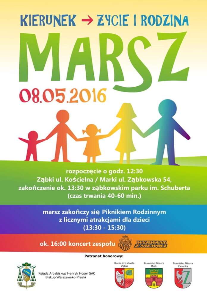 W niedzielę 8 maja br. pod hasłem „Kierunek Życie i Rodzina” ulicami trzech sąsiadujących ze sobą miast: Ząbek, Marek i Zielonki przejdzie marsz.