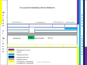 W dniu dzisiejszym zadzwoniłam również do wykonawcy koncepcji oraz projektu firmy TMP z Warszawy, ponieważ pani naczelnik Bożena Kucharczyk nie potrafiła odpowiedzieć na pytanie „Dlaczego ścieżka pieszo-rowerowa ma być na odcinku 300m po lewej stronie a na odcinku 1,1km po prawej”. Naczelnik skierowała mnie z tym pytaniem oraz z pytaniem, ile metrów działki zostanie przejęte pod drogę – i po której stronie – do wykonawcy projektu. Gdy zadzwoniłam otrzymałam informację na dzień dobry: „Gmina Wołomin zabroniła udzielania jakichkolwiek informacji mieszkańcom ulicy.” Jakim prawem pytam?! Burmistrz Radwan chwali się wszędzie, że prowadzi W KAŻDEJ WAŻNEJ KWESTII, w sprawie KAŻDEJ ulicy, SZEROKIE KONSULTACJE, że SŁUCHA