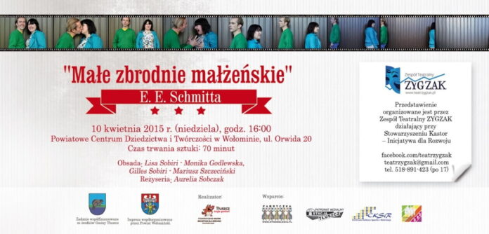 Zespół Teatralny ZYGZAK z Tłuszcza zaprasza na spektakl „Małe zbrodnie małżeńskie”