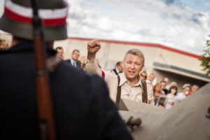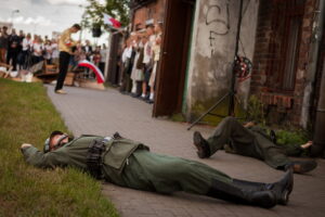 Tłumnie zgromadzeni mieszkańcy Wołomina dzięki inscenizacji przygotowanej przez Jarosława Dąbrowskiego, Związek Strzelecki”Strzelec” i I Liceum Ogólnokształcące PUL w Wołominie, przenieśli się w klimat wydarzeń z sierpnia 1944 roku. Mieliśmy okazję zobaczyć i pucybuta i zakochanych przechadzających się po warszawskich uliczkach. I poczuć na własnej skórze jak wszystko to, nagle, w ułamku sekund zamieniło się w wojenny koszmar garstki Powstańców. Na szczęście, tym razem Powstańcy wygrali i przy zdobycznym czołgu mogliśmy wraz z nimi odśpiewać dumnie Hymn Polski.
