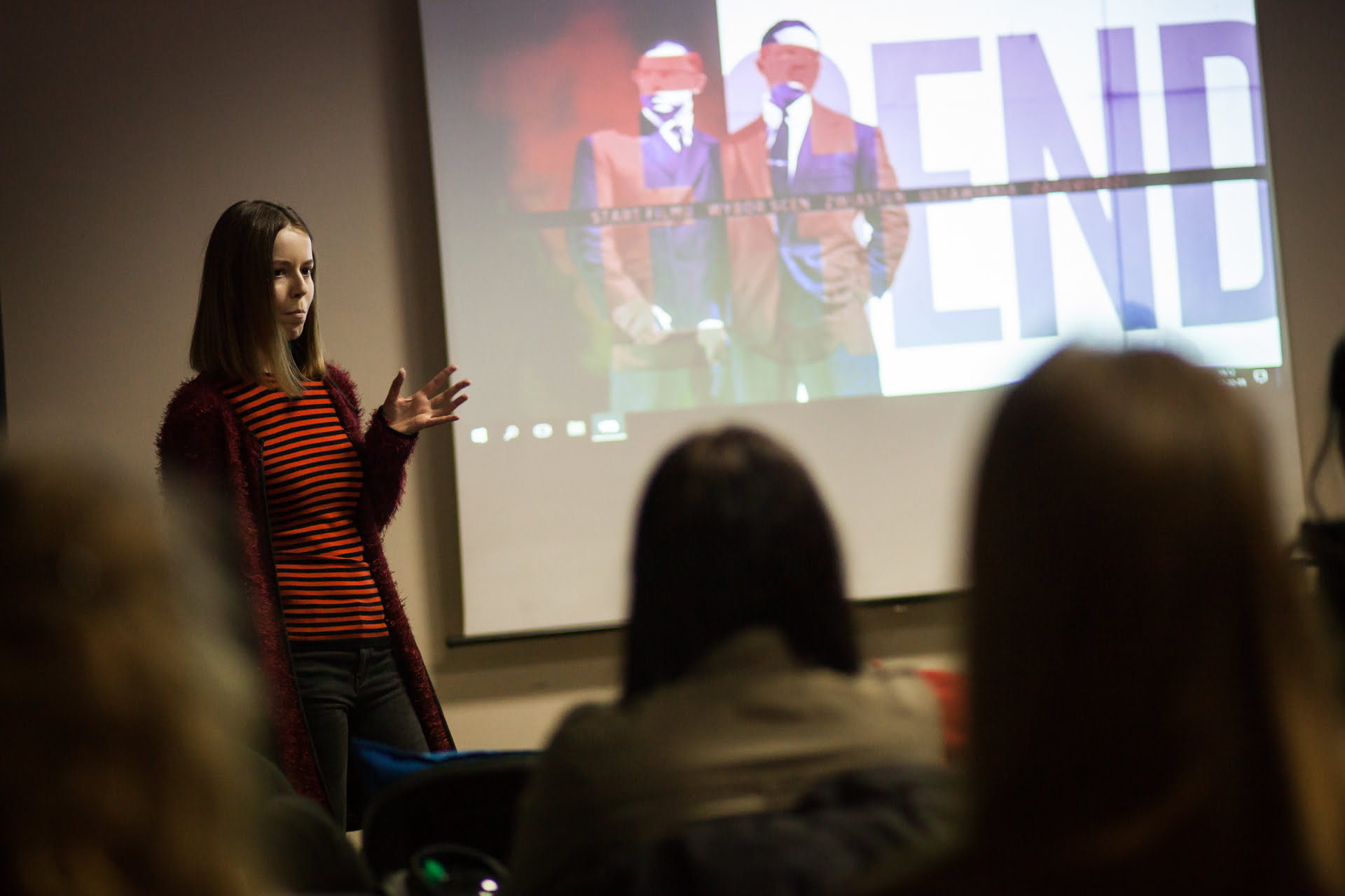 Wieczór filmowy nie opierał się jedynie na oglądaniu filmów, ale również na dyskusji z zaproszoną filmomanką – Eweliną Dzięcioł.
