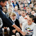 Kolejnym miejscem, które odwiedził rzecznik była Szkoła Podstawowa nr 7 z Oddziałami Integracyjnymi im. Królowej Jadwigi w Wołominie. Spotkanie odbyło się na sali gimnastycznej i wzięły w nim udział dzieci z klas 1-3, które przywitały gościa gromkimi brawami. Następnie uczniowie klasy 1f wraz z rodzicami zaprezentowali niezwykle barwny apel o prawach i obowiązkach dziecka. Były śpiewy i tańce, a także czas na zadawanie pytań rzecznikowi, który z uśmiechem odpowiadał na każde, nawet te nienajłatwiejsze, jak chociażby czy potrafi grać w piłkę nożną. Na zakończenie spotkania minister obdarował dzieci upominkami, a na ręce pani dyrektor przekazał ozdobną planszę z Kodeksem Praw Dziecka do powieszenia na ścianie, by przypominała wszystkim prawa najmłodszych.