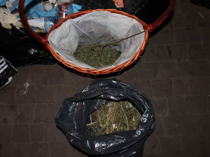 W śmietniku na zewnątrz budynku w foliowych reklamówkach kryminalni odnaleźli susz roślinny i łodygi o łącznej wadze 511 gramów. Badanie wykazało, że była to marihuana. Kamil B. został zatrzymany i trafił do policyjnej celi.