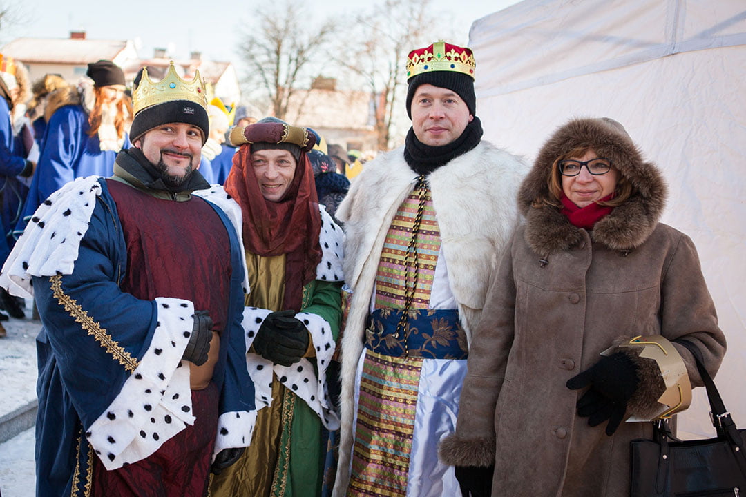 Następnie orszak ruszył do kościoła Matki Bożej Królowej Polski, gdzie o godz. 13.00 odbyła się uroczysta Msza święta. Mimo siarczystego mrozu mieszkańcy licznie przybyli na uroczystość i towarzyszyli Trzem Królom w orszaku.