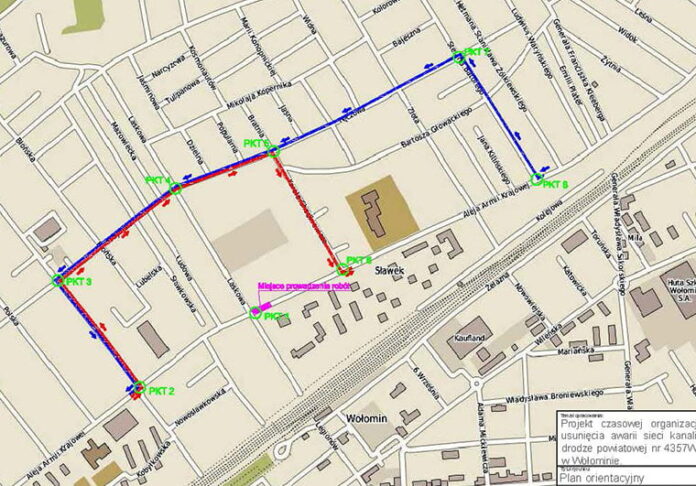 W związku z koniecznością usunięcia awarii sieci kanalizacyjnej u zbiegu ulic Armii Krajowej i Laskowej, od wczesnych godzin porannych w poniedziałek 25 stycznia będzie wprowadzony objazd ul. Armii Krajowej w Wołominie.