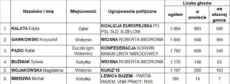 Wśród kandydatów zgłoszonych przez wszystkie komitety znalazło się sześć osób z powiatu wołomińskiego
